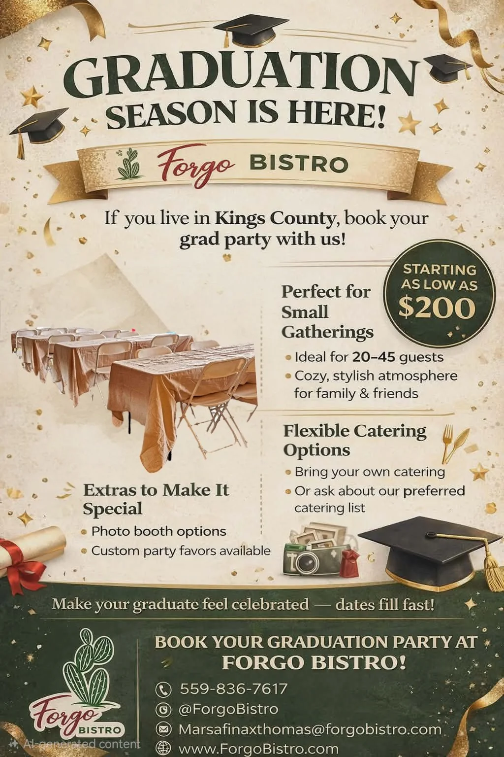 Don't forget!! Book your event with Forgo Bistro. For graduation or Birthday. Julius ThomasMarch 19, 2026