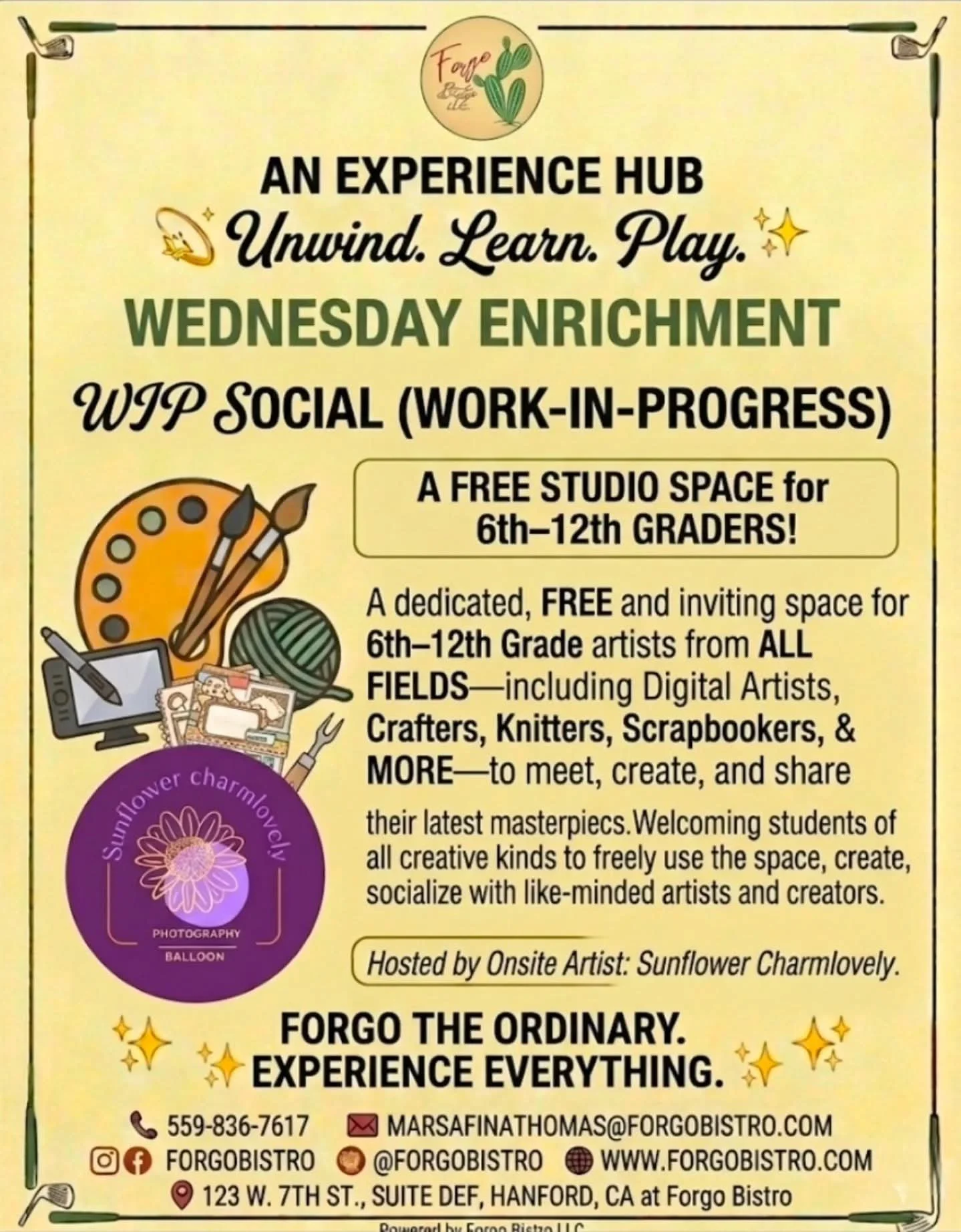 We are currently looking for local vendors and creatives in the Hanford, CA area who are interested in collaborating with Forgo Bistro through hosted vendor events and workshops.